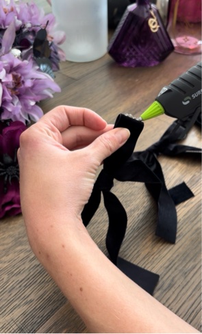Supplies: 2 Spools of Velvet Ribbon, Hot Glue Gun & Hot Glue