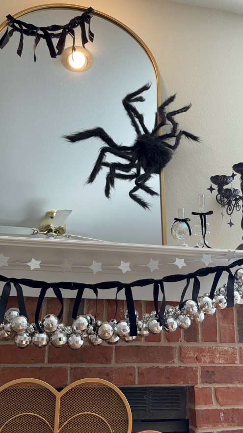 5. I got lucky and was able to use the stars & disco ball garland I already had hanging on my mantel to get my bow garland to stay up there. If this is your only garland. I suggest get string or yarn and attaching the end your garland and hang off mini command hooks.